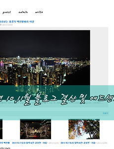 IT Life/블로그111 2012년 1월 블로그 결산 및 애드센스 수익공개 2012년이 시작된지 얼마 안된거 같은데.. 벌써 한달이 훌쭉 지나고 결산까지 하게되네요..^^ 세월 참.. 빠릅니다..ㅜ.ㅜ 1. 다음뷰 베스트 선정 없엉요~ㅠㅠ 2. 최다 댓글 포스트 BEST 5 ① 3박 4일 일본 간사이지역(오사카, 교토, 나라) 여행 준비하기 (42) ② 2011년 블로그 결산 및 애드센스 수익 공개 (38) ③ 인천 오사카 아시아나항공 초간단 기내식 (37) ④ [오사카] 겨울에는 아쿠아라이너가 무료인 이유? (36) ⑤ [오사카] 우메다 공중정원에서 보는 환상적인 야경 #2 (실내전망대) (33) 3. 댓글 많이 남겨주신 블로거 BEST 5 ① 레이니아 (13) ② 자유투자자 (12) ③ 신기한별 (10) ④ 로사아빠! (9) ⑤ 하늘엔별 (8) ★입질의 추억★ (8) 아톰양.. 2012. 2. 2. 2011년 블로그 결산 및 애드센스 수익 공개 다사다난했던 2011년이 지나고 2012 임진년 새해가 밝았네요.. 모두 용의 기운을 받아 새해 복 많이 받으시길 바라겠습니다~^^ 2012년 첫 포스팅은 작년 한해 결산을 간단하게 하는 걸로 하겠습니다..^^ 글 수 247개 / 댓글 수 9,334개 / 트랙백 58개 / 방문자 수 591,681명 1. 댓글을 가장 많이 받은 포스트 Best10 ① [제주도] 귀여운 곰돌이 인형의 천국, (88) ② [제주도] 정갈한 전복정식이 일품인 곳! (85) ③ 맛깔나고 예쁜 일본항공 기내식(소라벤)을 먹다! (85) ④ '나는 가수다' 를 보고 묵혀놨던 박정현 앨범들을 다시 꺼내다.. (78) ⑤ 아이폰4 화이트 개봉기 및 블랙과 간단비교기 (78) ⑥ [제주도] 객실 대부분이 바다전경이라 좋은 (74) ⑦ 2.. 2012. 1. 2. 드디어 3년만에!! 2011 티스토리 우수블로그에 선정되었습니다..^^ 2009년, 2010년에 우수블로그에 선정되지 못해 솔직히 아쉬움이 많았는데.. 드디어 3년만에 티스토리 우수블로그에 선정되었습니다.. 아.. 감격의 눈물이..ㅜ.ㅜ 여행부문 우수블로그로 선정되어 있었습니다.. 솔직히 올해 일을 시작하고는 예년에 비해 블로그에 신경을 많이 못썼는데.. 이렇게 덜컥 선정되서.. 역시.. 욕심을 버리고 신경을 안쓰니까 되네요..ㅋㅋ 암튼.. 그렇게 원하던 우수블로그에.. 무려 3년만에 선정되니 정말 기분이 좋습니다..^^ 매년 다른 우수블로거 분들이 받으시던 선물이 참 부러웠는데.. 이번에는 저도 받을 수 있다니..^^ 암튼.. 선정해주신 티스토리에 감사드리며.. 앞으로도 좋은 내용으로 찾아뵙겠습니다.. 내년에도 선정될 수 있도록 열심히 할게요~^^ 포스팅 소재를 위해 어디.. 2011. 12. 23. 2011년 10,11월 블로그 결산 및 애드센스 수익공개 2달만의 결산 포스팅입니다.. 10, 11월 한꺼번에 모아 결산을 하도록 할게요..^^ 그나저나.. 2011년도 끝물이군요..ㅋㅋ 1. 다음뷰 베스트 3개 선정 [10/09] 서울 하늘을 화려하게 수놓다. 2011 서울세계불꽃축제 [10/24] 특별함이 없어 아쉬웠던 2011 서울에어쇼 [11/12] 아이폰4S 개봉기 및 아이폰4와의 간단 비교기 2달을 모아도 베스트는 3개 밖에 안되니..ㅋㅋ 그래도 아이폰4S가 출시해서 평균 방문자는 많이 늘었네요..^^: 2. 최다 댓글 포스트 BEST 5 ① 특별함이 없어 아쉬웠던 2011 서울에어쇼 (40) ② [홍콩] 저렴하고 맛있는 쌀국수를 파는 곳, 나트랑(Nha Trang) (36) ③ 탐론 망원렌즈 TAMRON SP 70-300mm F/4-5.6 Di V.. 2011. 12. 5. 2011년 11월 프레스블로그 MP에 선정되었습니다..^^ 사실 후보에 올라갔는지도 몰랐는데.. 덜컥! 프레스블로그 Monthly Posting에 선정되었습니다..^^ 추천해주신 모든 분들께 감사드립니다..^^ 간단한 인터뷰도 했구요..(캡쳐화면 보이시죠?^^) 같이 선정된 분들 중엔 라이너스님 밖에 모르겠네요..^^: 선정된 다른 분들의 인터뷰를 보실 분들은 아래 링크를 타고 들어가시면 됩니다.. http://www.pressblog.co.kr/thereview/mp/interview/ 앞으로 더 열심히 블로깅해야겠네요.. 감사합니다..^^ 2011. 11. 16. 2011년 9월 블로그 결산 및 애드센스 수익공개 이제 가을의 한가운데 들어온 것 같네요.. 야구시즌이 끝나가는 걸 보며 느끼고 있습니다..ㅋㅋ 1. 다음뷰 베스트 2개 선정 [09/22] [도쿄] 언제나 사람이 북적이는 시장, 아사쿠사 나카미세도리 [09/30] 직접 본 삼성라이온즈의 2011년 페넌트레이스 우승 현장 확실히 그 날의 이슈가 되는 포스트가 베스트에 잘 선정되는거 같아요.. 삼성의 우승 포스팅이 예상대로 베스트가 된 걸 보면..^^ 2. 최다 댓글 포스트 BEST 5 ① [도쿄] 야구팬이 도쿄여행을 가면 꼭 가게 되는 곳, 도쿄돔 (40) ② [도쿄] 도쿄에서 가장 오래된 사찰, 센소지 (40) ③ [도쿄] 카렛타 시오도메 전망대와 광고박물관 (37) ④ [도쿄] 화려한 조명과 멋진 빌딩이 인상적인, 오모테산도 (36) 2011년 8월 .. 2011. 10. 7. 2011년 8월 블로그 결산 및 애드센스 수익공개 유난히 오락가락하는 날씨에 고생을 한 8월 한달인것 같습니다.. 이번에는 일찍 결산을 해봤어요..^^ 1. 다음뷰 베스트 1개 선정 [08/10] [가마쿠라] 이 곳은 새들의 천국? 츠루가오카하치만구(鶴岡八幡宮) 그래도 매월 하나씩은 선정되는거 같네요..^^; 2. 최다 댓글 포스트 BEST 5 ① 2011년 7월 블로그 결산 및 애드센스 수익공개 (55) ② [가마쿠라] 가마쿠라 여행의 빼놓을 수 없는 즐거움, 에노덴(江ノ電) (44) ③ [가마쿠라] 이 곳은 새들의 천국? 츠루가오카하치만구(鶴岡八幡宮) (43) ④ [선릉맛집] 이탈리안 음식점 