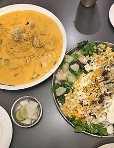 컨트리맨즈1 컨트리맨즈 롯데백화점 강남점 몇 주전에 다녀온 곳을 이제서야 포스팅을 하네요..^^: 사실 포스팅을 할까말까 고민하긴 했지만.. 그래도 사진은 찍어놨으니 해보겠습니다 ㅎㅎ 얼마전 한티역 롯데백화점 강남점 지하 일부분이 공사를 하더니.. 바로 라는 아메리칸 패밀리 레스토랑이 생겼습니다^^ 분위기는 대충 요렇습니다.. 메뉴판을 볼까요? 우선 시카고 피자가 보이길래 주문했습니다. 8인치가 19800원.. 꽤 하긴 했지만.. 그래도 오랜만에 딥디쉬 피자를 먹어보고 싶어서 주문했네요... 바베큐 메뉴.. 무쇠 피자 메뉴들.. 10인치 피자 가격치고 꽤 합니다.. 파스타 메뉴들.. 여기서 컨트리맨즈 파스타를 주문했어요. 해물이 들어간 크림 소스에 살짝 매콤한 맛이 난다고 합니다. 그리고 콥 샐러드도 주문하고.. 음료는 컵을 주고 디스펜서에서 .. 2017. 5. 15. 이전 1 다음
