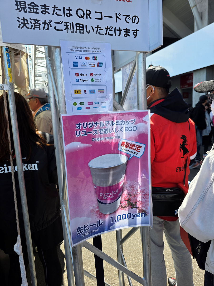 알루미늄 리유저블 컵에 구입하면 1000엔, 종이컵은 800엔이었습니다.